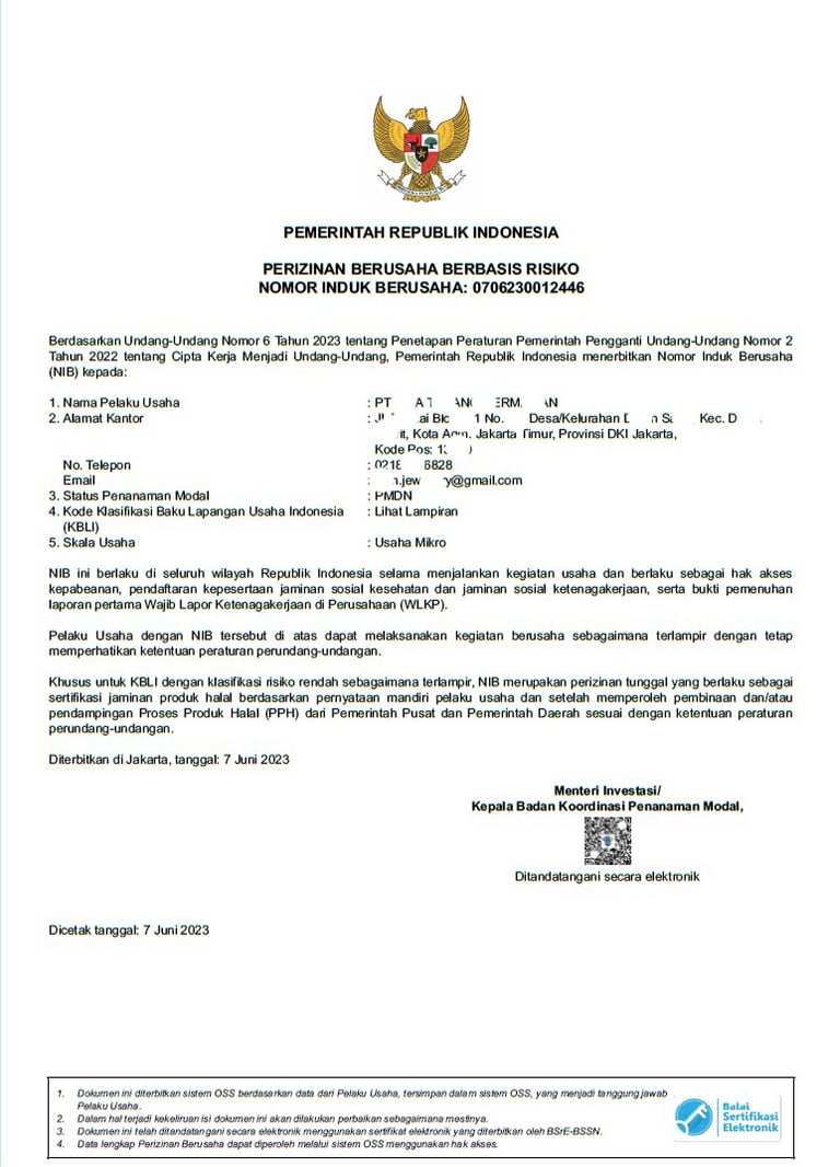 Pendirian Badan Usaha CV, PT, PMA, PT PERORANGAN di Indonesia