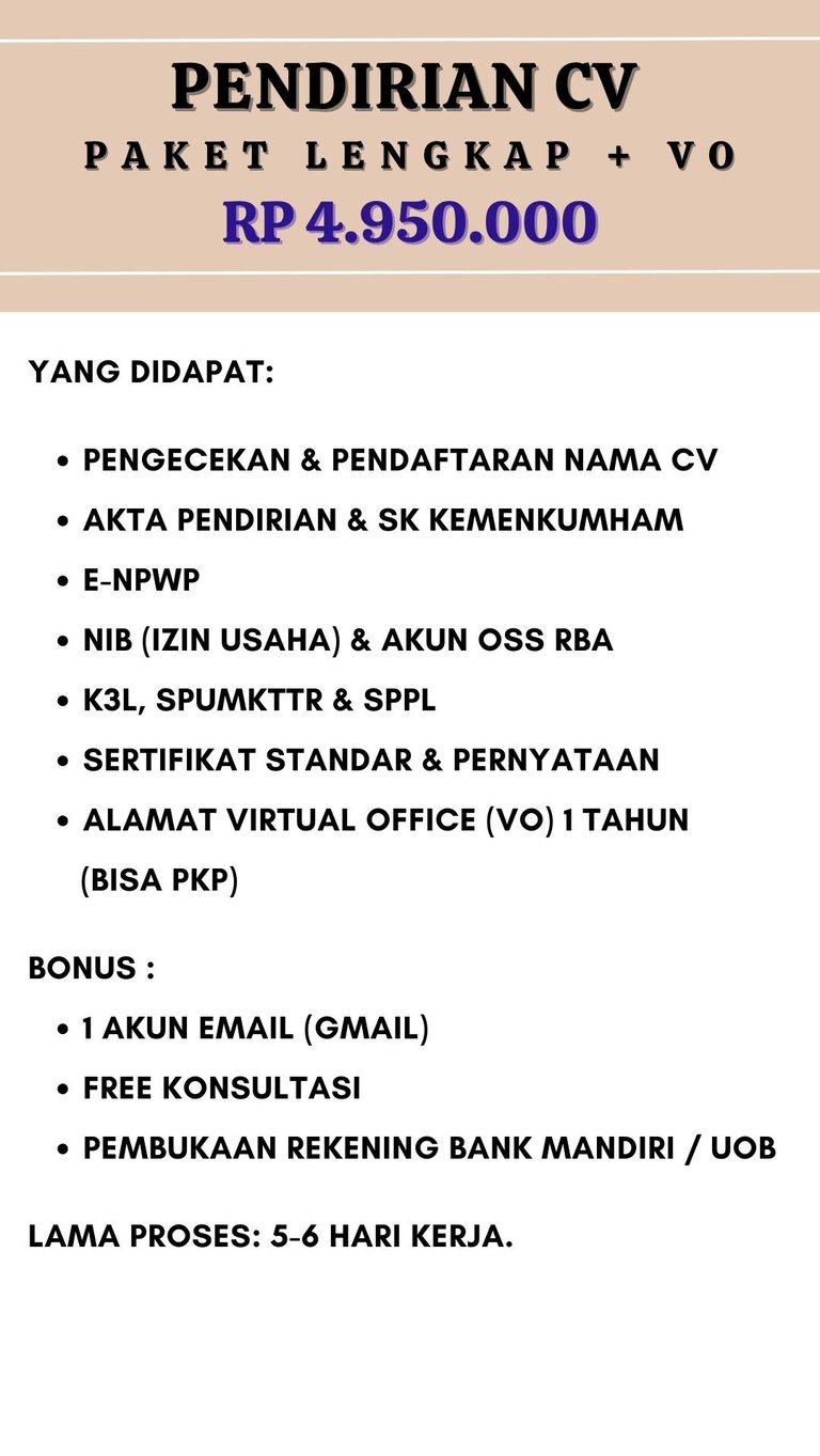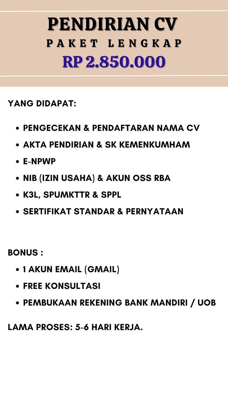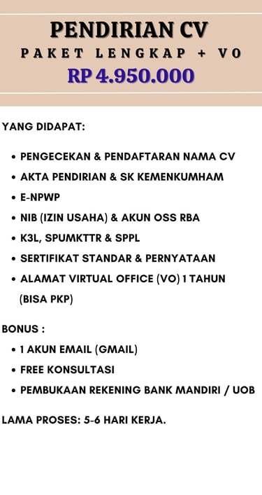 Nama perusahaan CV bisa sesuai keinginan. Kalau Perusahaan yang berbentuk PT tidak bisa memakai sembarang nama karena adanya kemungkinan perusahaan lain telah menggunakannya.