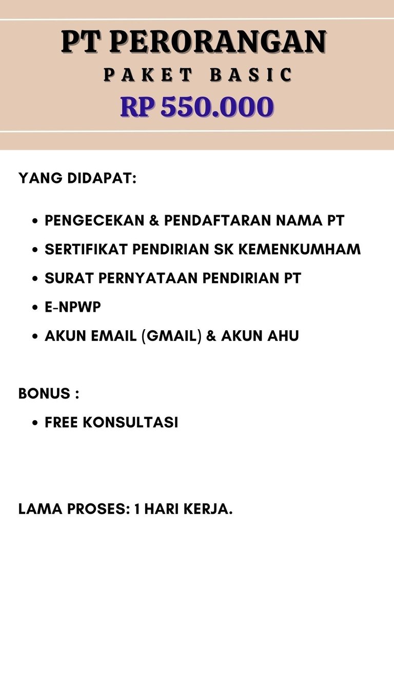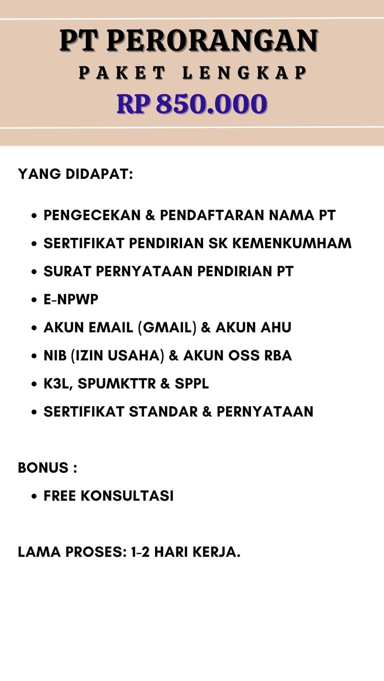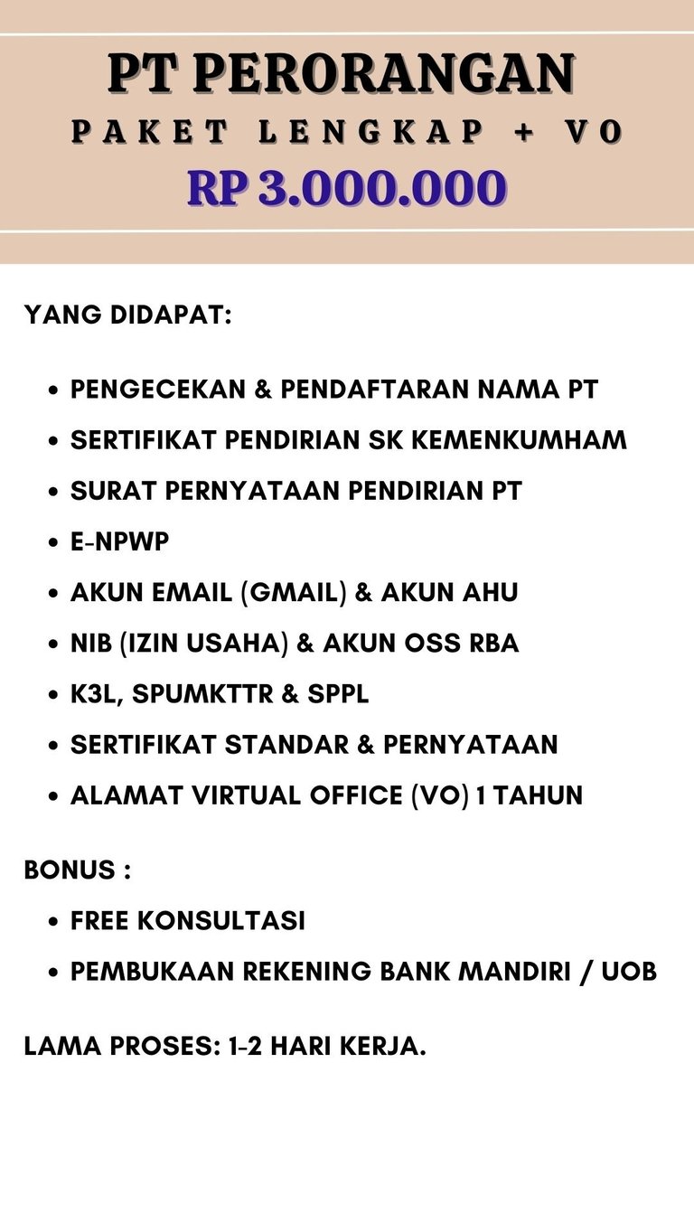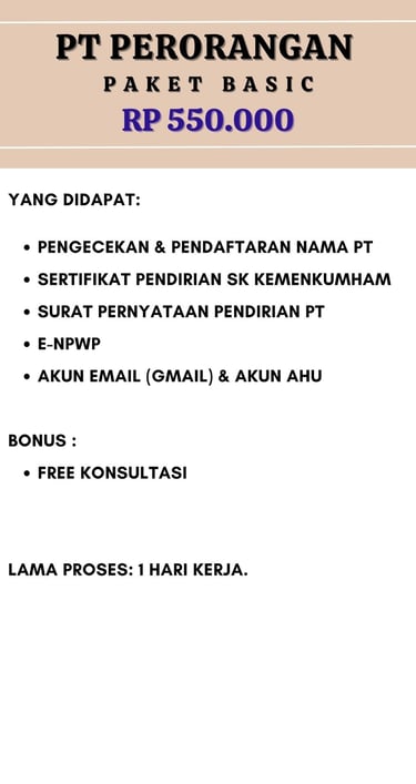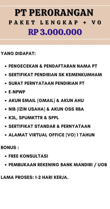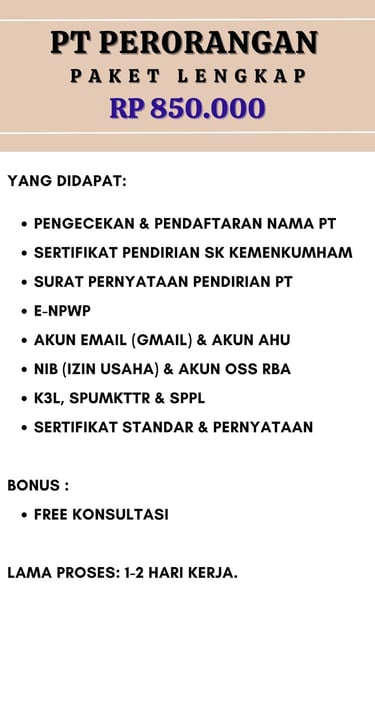 Jasa Pendirian izin badan usaha PT PERORANGAN